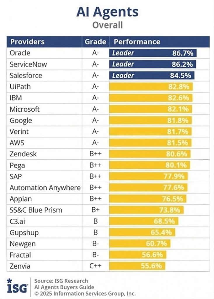 El estudio de ISG evalúa a los proveedores de agentes de inteligencia artificial a través de siete categorías que abarcan la experiencia de producto y la experiencia del cliente. El análisis identifica un conjunto de plataformas que destacan por su madurez tecnológica, su enfoque en capacidades avanzadas de IA agentica y su potencial para transformar la automatización empresarial.